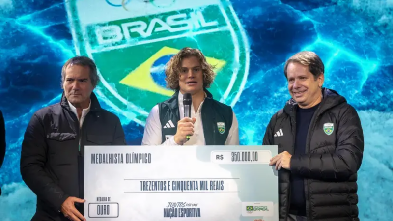 Lucas Pinheiro Braathen recebe premiação do COB na Casa Brasil